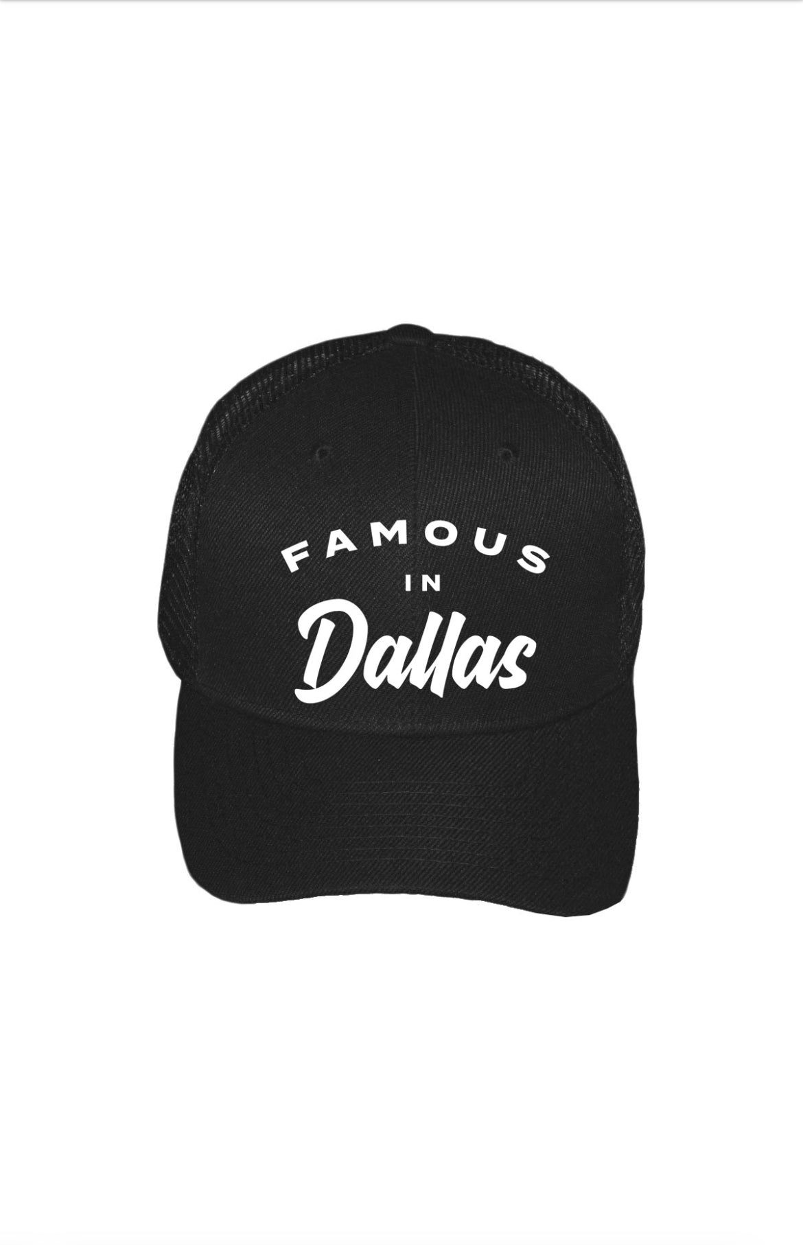 Famous in Dallas black trucker hat